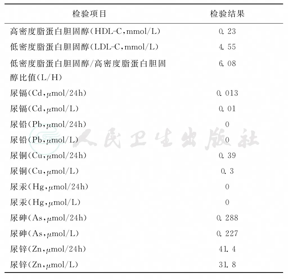 实验室部分检验结果见表1。
