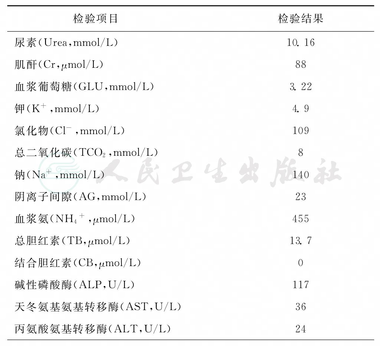 表1 实验室检验部分结果