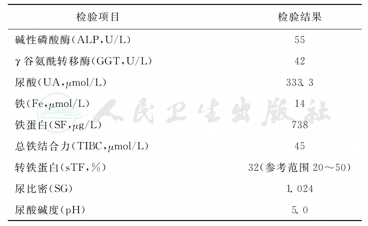 实验室主要检验结果见表1。尿液显微镜细胞检查正常。