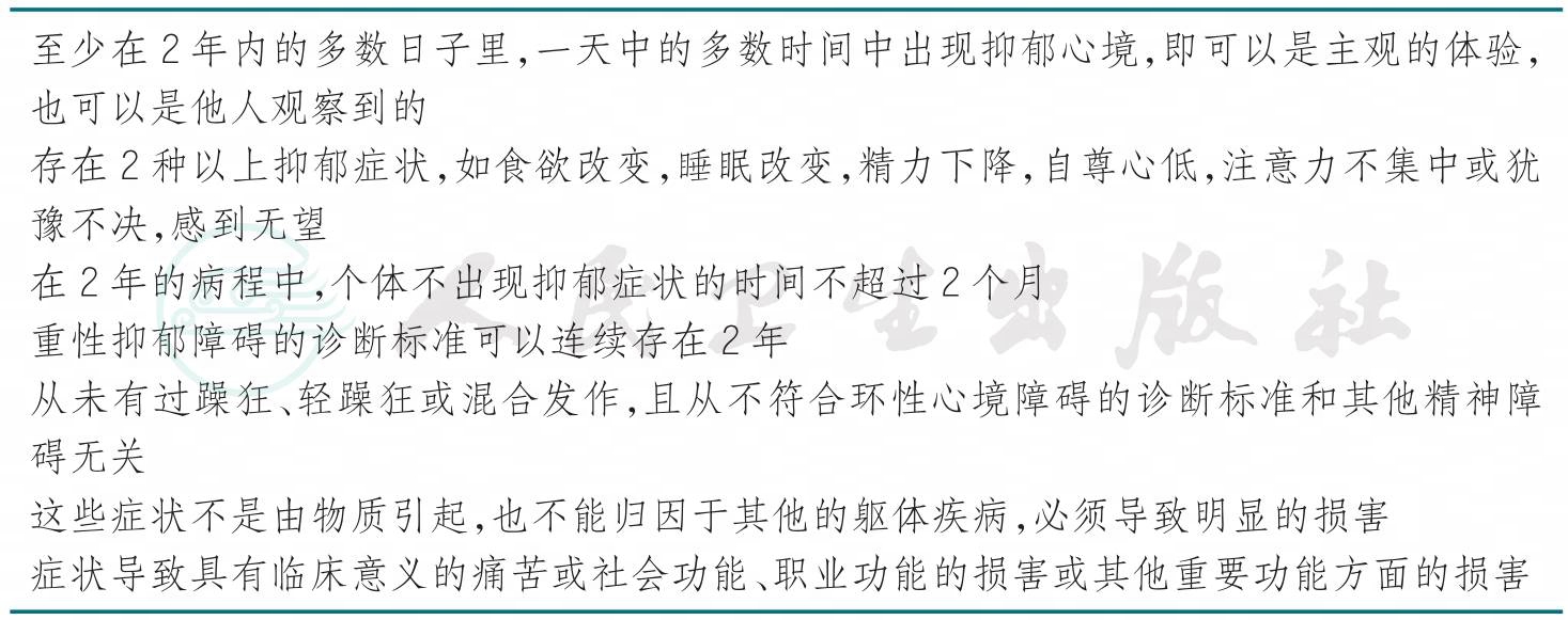 1.理解持续性抑郁障碍的诊断标准(表1);