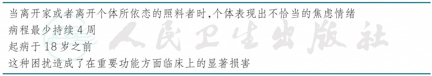 表1 分离性焦虑障碍诊断标准