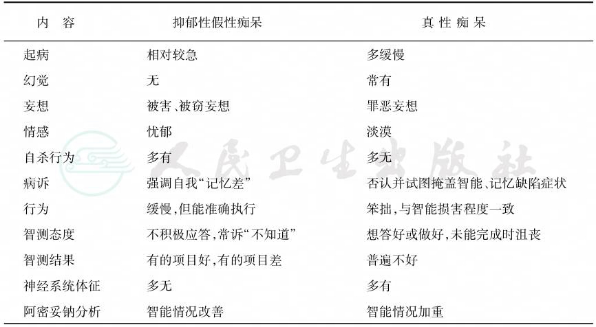 | 内 容 抑郁性假性痴呆 真性痴呆 |
