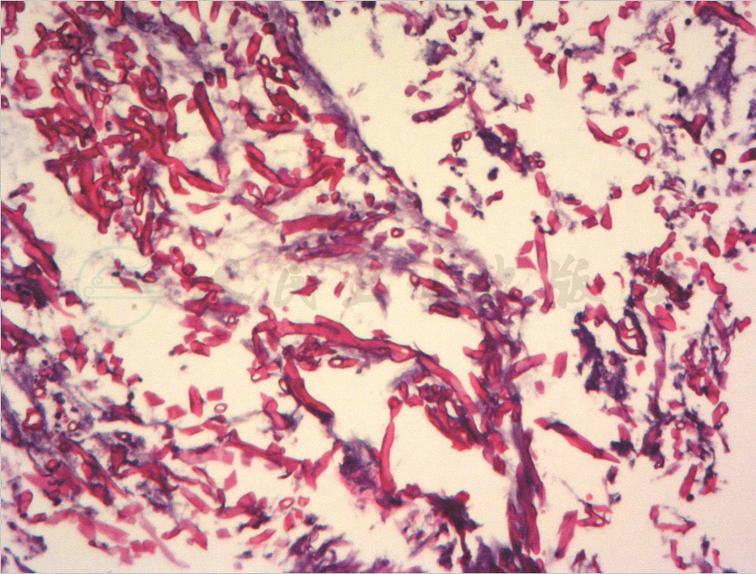 目前临床上鉴定真菌采用的方法有多种,在实际应用中各有利弊。真菌培养历时长且易出现假阴性;近年来开展的分子生物学诊断技术,如针对真菌抗原检测的G试验、GM试验,在毛霉菌感染时为阴性。组织学病理诊断是金标准,在显微镜下进行形态学观察方便快捷,但有时与其他菌种很难鉴别。毛霉菌的形态学特点为:菌丝粗(直径5~15μm),分枝不规则,很少分隔。这与曲霉菌的菌丝刚好相反,较具特征性;有时毛霉菌和曲霉菌在镜下很难区别,可运用以下三步法作出鉴别诊断:①采用荧光染色法观察菌丝是否有隔膜:钙荧光白是一种荧光增白剂,能与真菌细胞壁的纤维及几丁质发生特异性结合,使真菌在荧光显微镜下发出浅蓝色荧光,易于辨认,一般认为若观察到菌丝无隔膜为毛霉菌,有隔膜则为曲霉菌。②GM试验:检测的是半乳甘露聚糖,这是曲霉菌特有的细胞壁多糖成分,若GM试验阳性,在很大程度上提示了曲霉菌感染;若阴性,继续进行第三步。③针对毛霉菌DNA进行PCR检测。