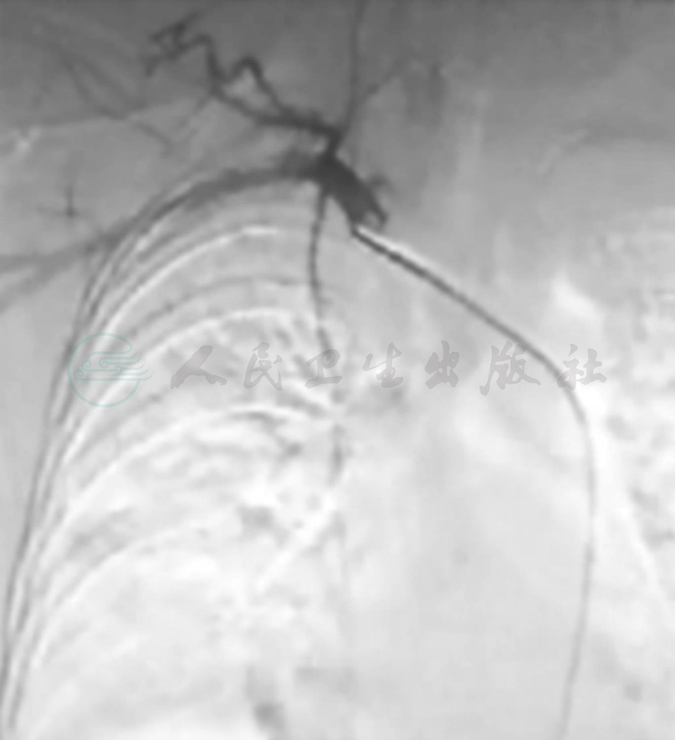 大咯血是指24小时内咯血量在300~600ml。大咯血是呼吸道疾病中突然死亡的原因之一,只有5%的咯血是巨大的,一些研究报告有80%的死亡率,死亡原因主要是由于出血后窒息。最常见的病因包括支气管扩张、囊性纤维化、肿瘤、结节病、肺结核等其他感染和支气管动脉瘘所致。支气管动脉瘘患者往往具有以下特点:①发病年龄较轻,反复发生咯血,咯血量通常较大;②临床、支气管镜和CT检查均不能明确咯血的原因;③DSA检查可发现扭曲、增粗、分支增多或粗细不均的支气管动脉,并显示单发或多发的支气管动脉、肺动脉瘘。经过数十年的临床研究,支气管动脉栓塞术(BAE)已成为治疗大咯血的有效手段。