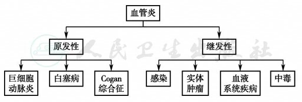 血管炎的诊断分为原发性血管炎和继发性血管炎,能引起继发性血管炎的病因有感染、实体肿瘤、血液系统疾病及中毒。