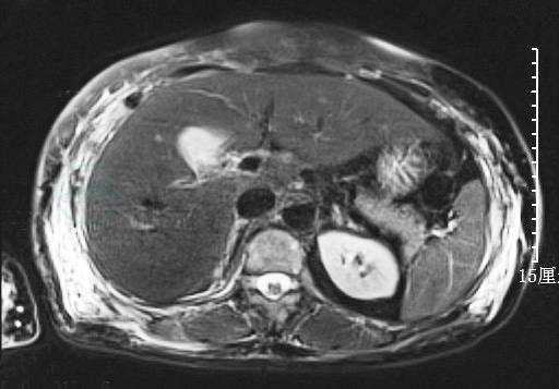胰腺MRI:胰腺体尾部稍饱满,所见椎体有多发骨质信号改变。