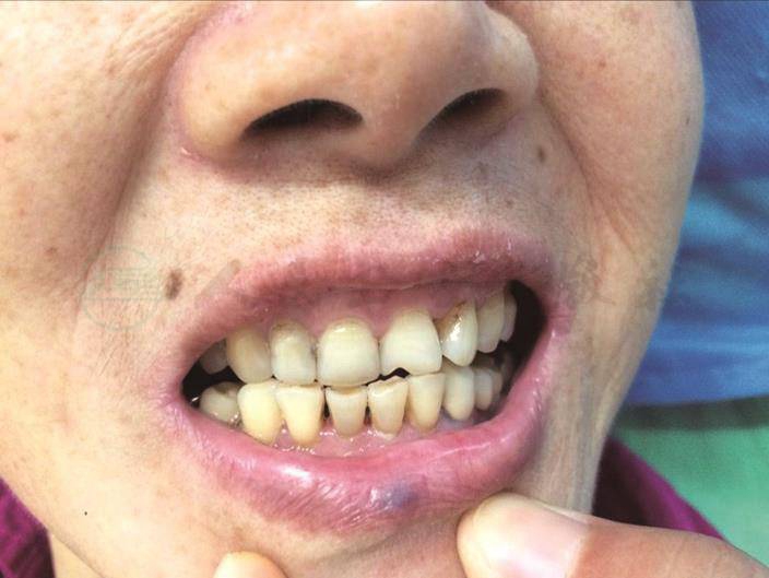 图1 患者牙龈可见铅线
