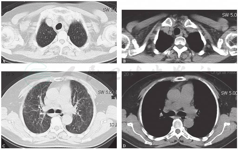 活动后呼吸困难、干咳是弥漫性间质性肺疾病常见的临床症状。其临床特点、影像学及病理学表现多样,需综合分析各种临床资料进行鉴别诊断,在谨慎排除各类继发性肺间质病基础上再行诊断原发性或特发性肺间质病变。对于不常见的间质病表现,如胸痛、皮疹、胸腔积液、体重下降等临床征象,务必要谨慎对待,小心求证,不可随意忽略,必要时积极行活组织检查,以探究竟。胃癌导致肺转移大多以血行播散为主,其引起的肺淋巴管癌病是一种特殊的转移形式,较为少见,但胃印戒细胞癌是发生肺淋巴管癌病的常见肿瘤之一,影像学可表现为小叶间隔不规则增厚伴周边型小结节、纵隔淋巴结肿大和(或)胸腔积液。