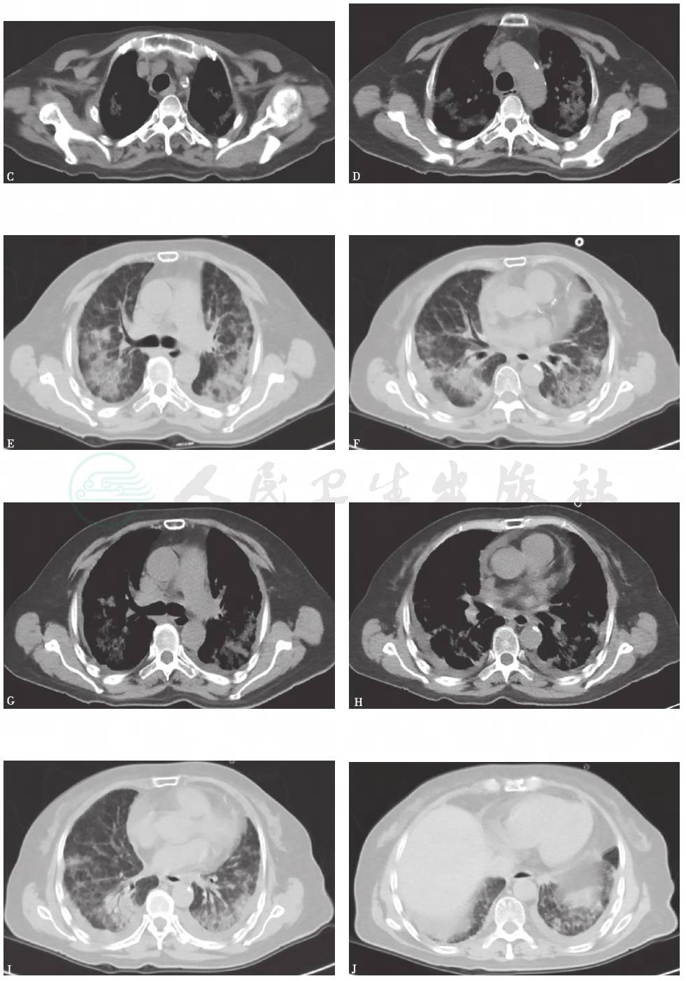5.应用激素后,患者临床症状有所好转,但影像学表现持续进展。