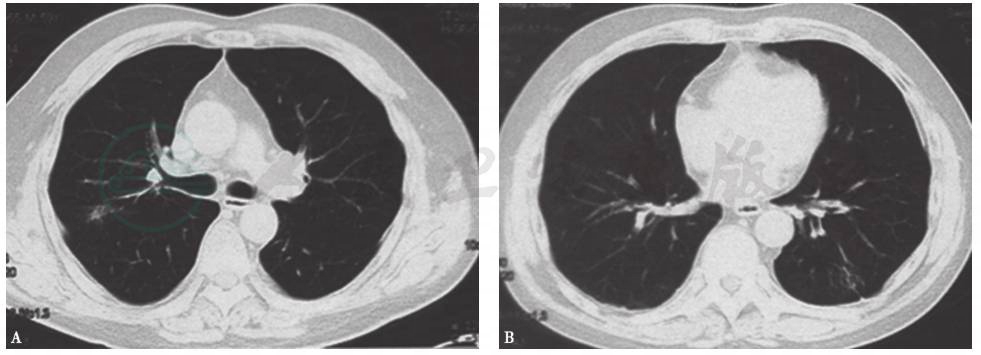2.主要临床表现为间断咳嗽、咳痰2个月,病初有活动后气短,无咯血、胸痛、发热等伴随症状。
