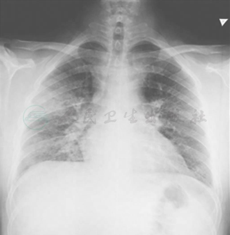 支气管肺泡癌是腺癌的一种类型,患者可出现咳嗽伴大量泡沫痰液,可发生于年轻人,胸部影像学检查可见局灶性或弥漫性肺实质高密度影。本病例目前不能排除这一可能。肺转移瘤胸部影像学表现常为多发结节影,患者发热少见。本例患者的X线胸片显示双侧肺部病变呈斑片状,为肺转移瘤的可能性不大。本例患者病程较长,不发热期间一般情况较好,无体重明显下降,食欲、二便正常,患肿瘤的可能性较小,但仍需进一步行胸部CT、支气管镜检查以及病理检查等以排除之。