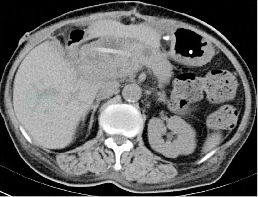 图12 术后1周复查腹部CT未见特殊影像