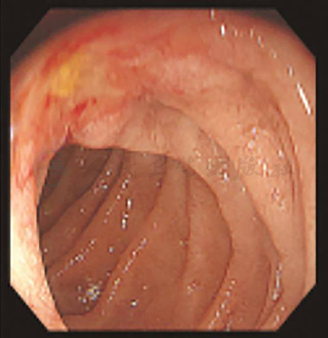 图7 病理为十二指肠慢性黏膜炎(HE染色,100×)