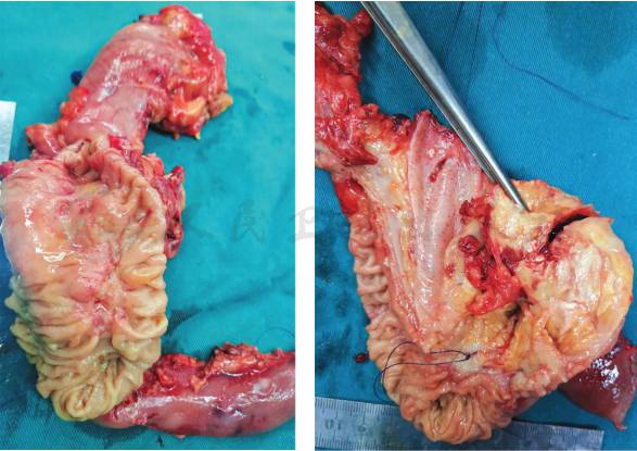 图10 壶腹部有一1.5cm×1.5cm大小肿物,侵及胰腺及十二指肠,胆管及胰管内可见陈旧性积血