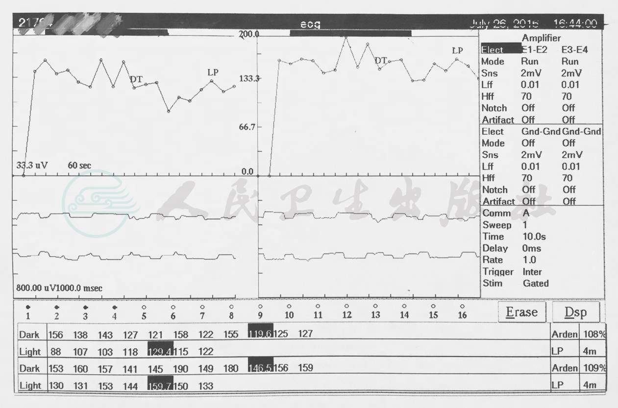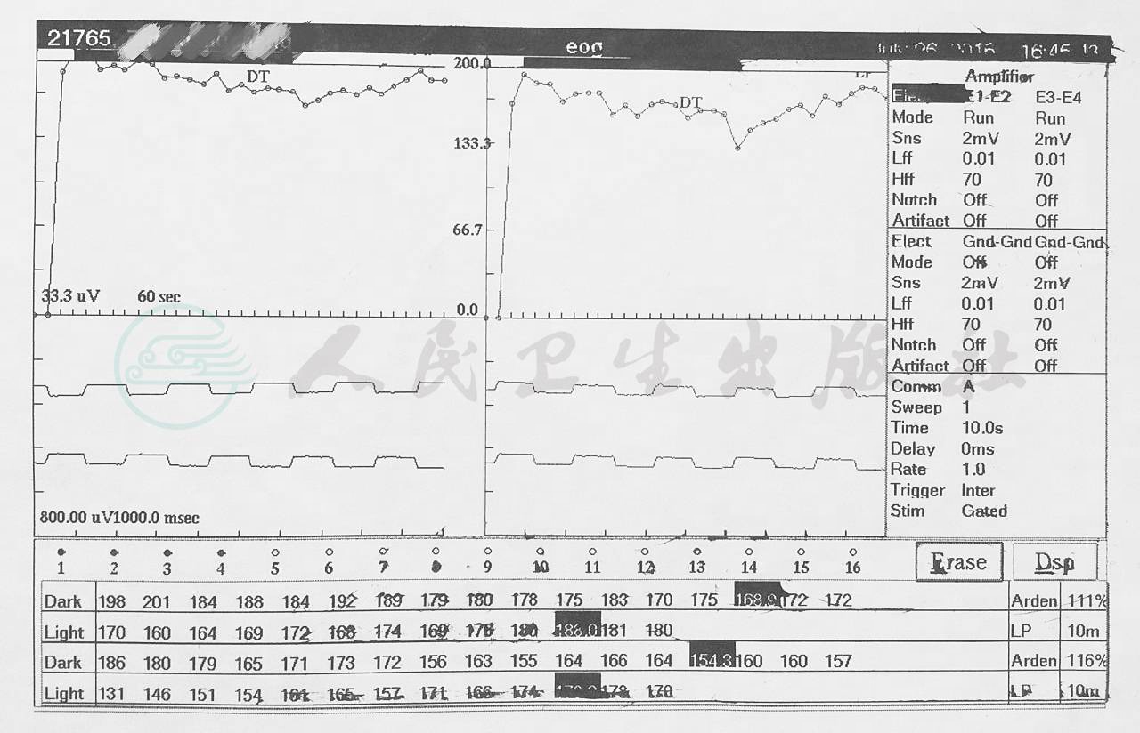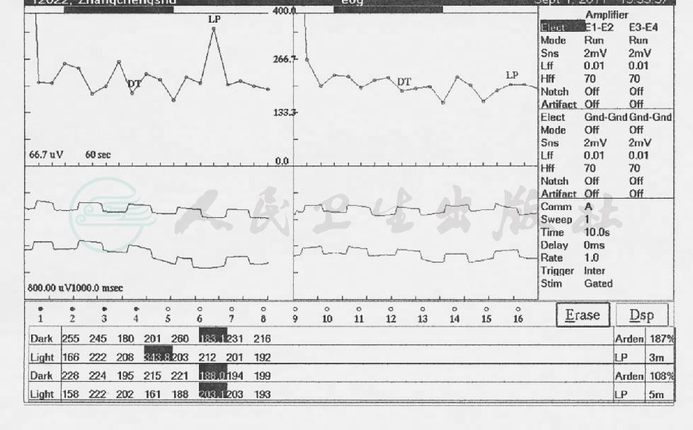 图4 EOG示患眼1.08(<1.5),对侧眼Arden值为1.87