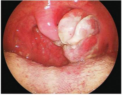 一侧扁桃体明显肿大,表面溃烂,不光滑或呈结节状隆起,触之较硬,易出血,扁桃体与周围组织粘连(图1)。同侧下颌下可触及肿大淋巴结,质硬,不活动,无压痛。