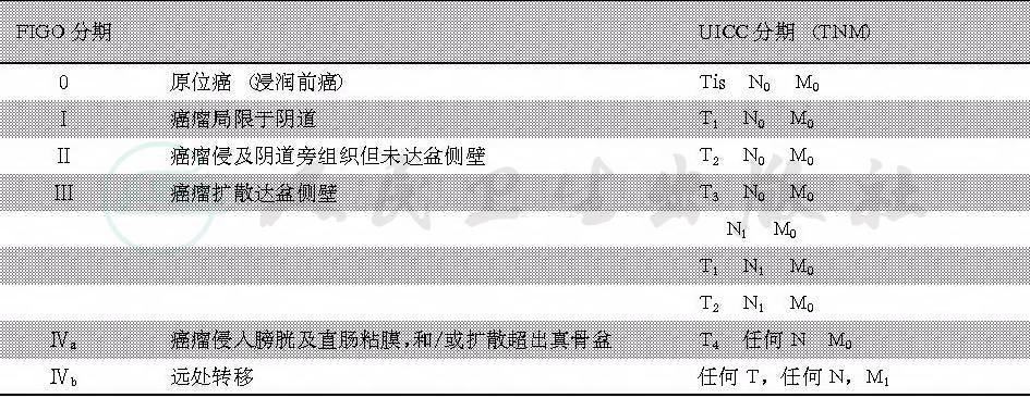 目前主要采用FIGO分期及UICC分期。(表1)