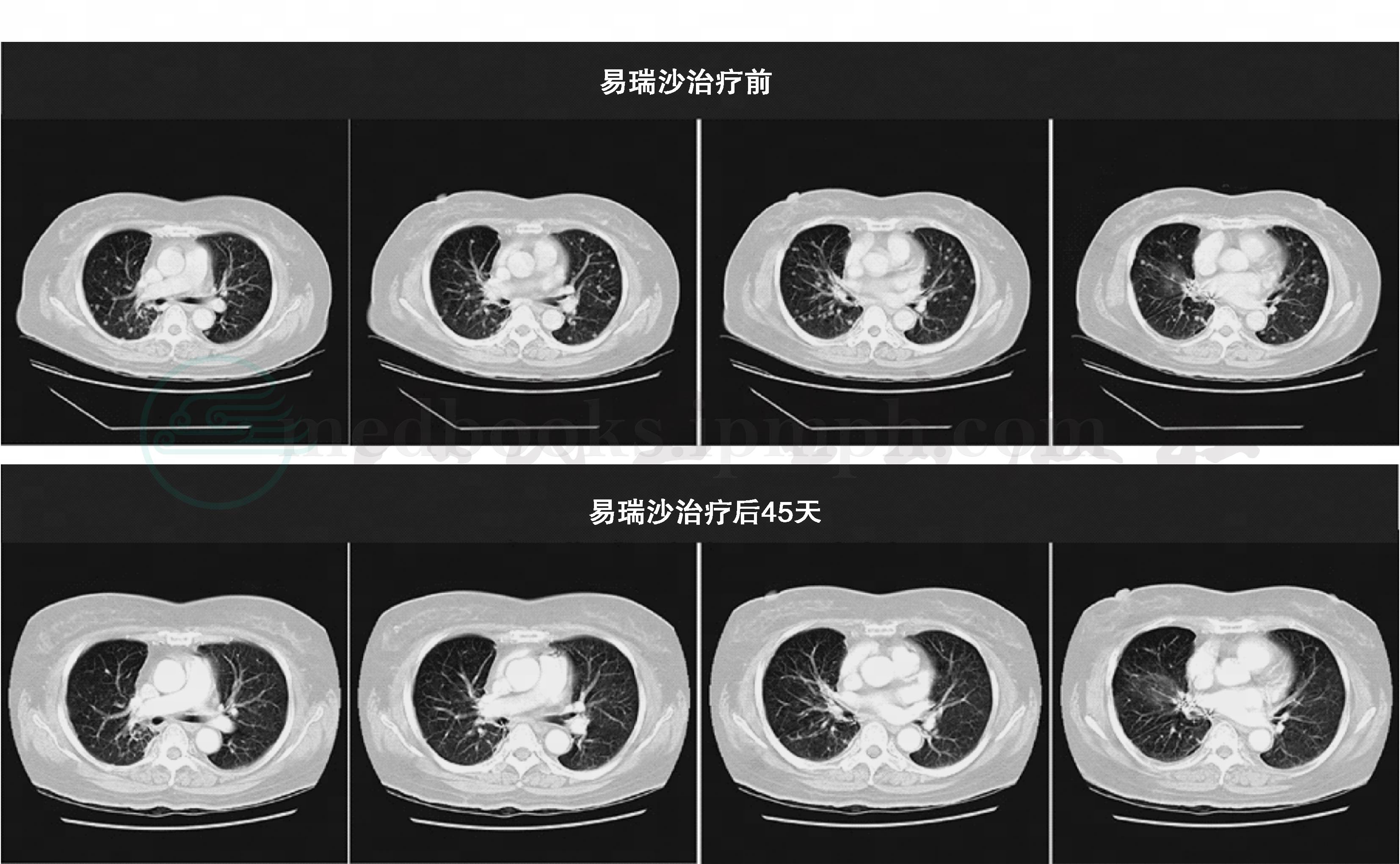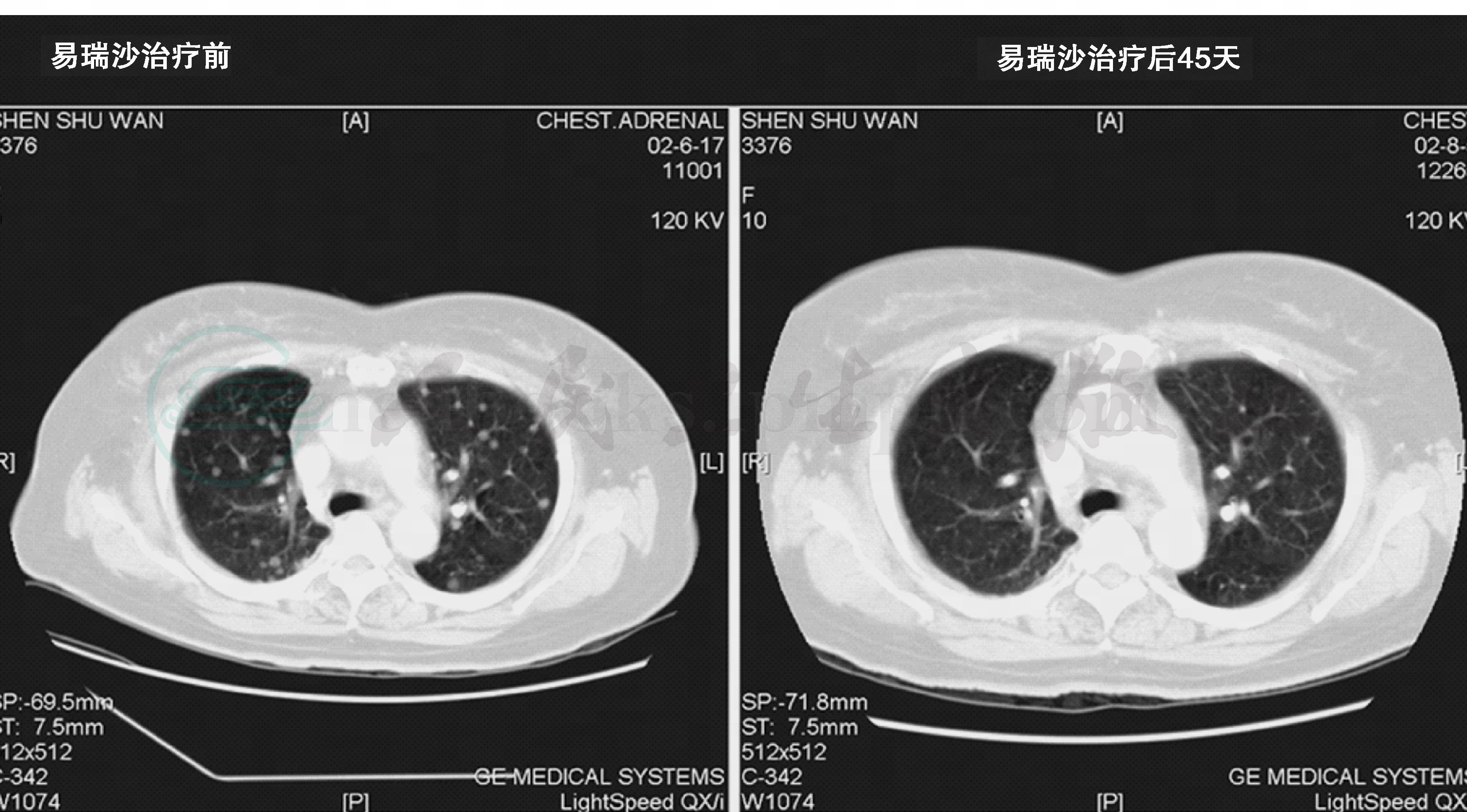 图4 弥漫性细支气管肺泡癌患者服用gefitinib45天后达完全缓解