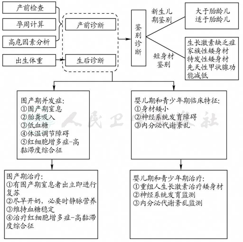 较少见,以上病因均可存在,器官细胞数减少,体积亦缩小,先天畸形发生率高,死亡率亦高。