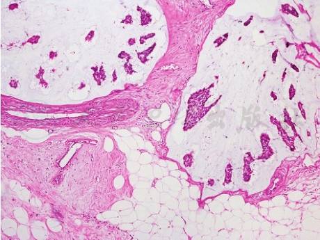 占浸润性癌的2%,常因乳腺X线摄影筛查发现,局部复发及远处转移率少,具有相对较好的预后。