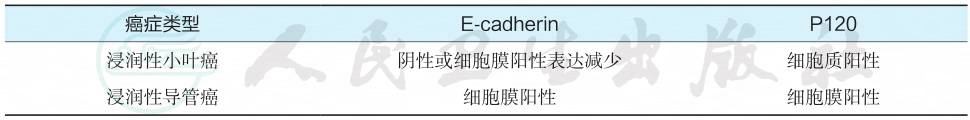 表1浸润性小叶癌与浸润性导管癌免疫组化鉴别诊断