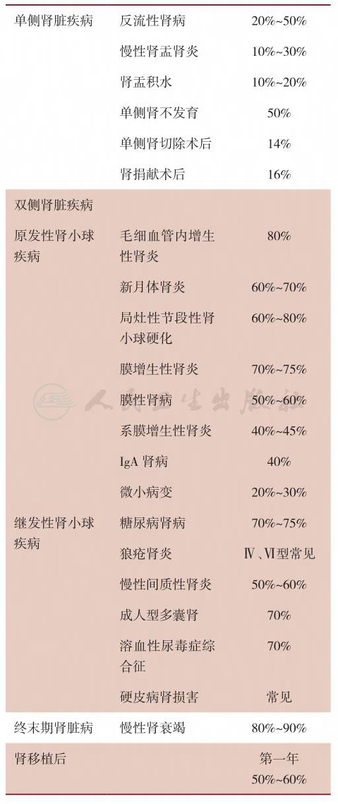 表1常见引起肾实质性高血压的疾病