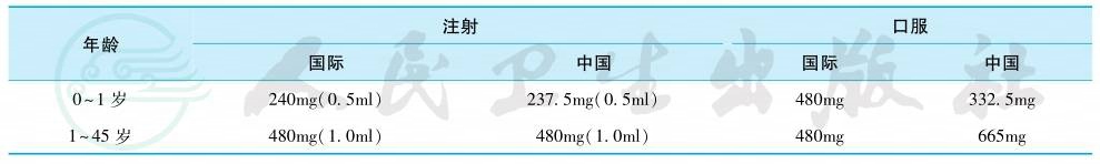 注:国际:指国际控制碘缺乏病理事会(ICCIDD)推荐剂量;中国:指我国现在采用的剂量