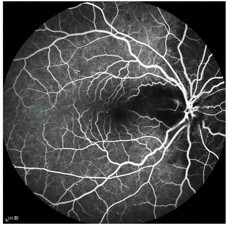 图1右眼睫状视网膜动脉阻塞的眼底血管造影