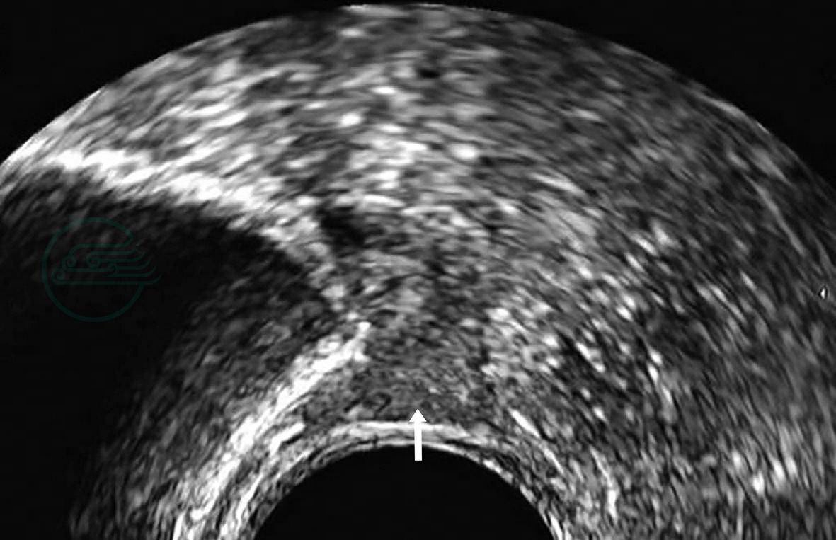 图2腔内超声双侧始基子宫二维灰阶声像图