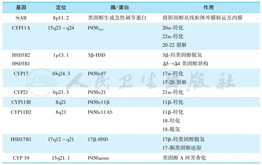 表1参与肾上腺类固醇激素合成的酶