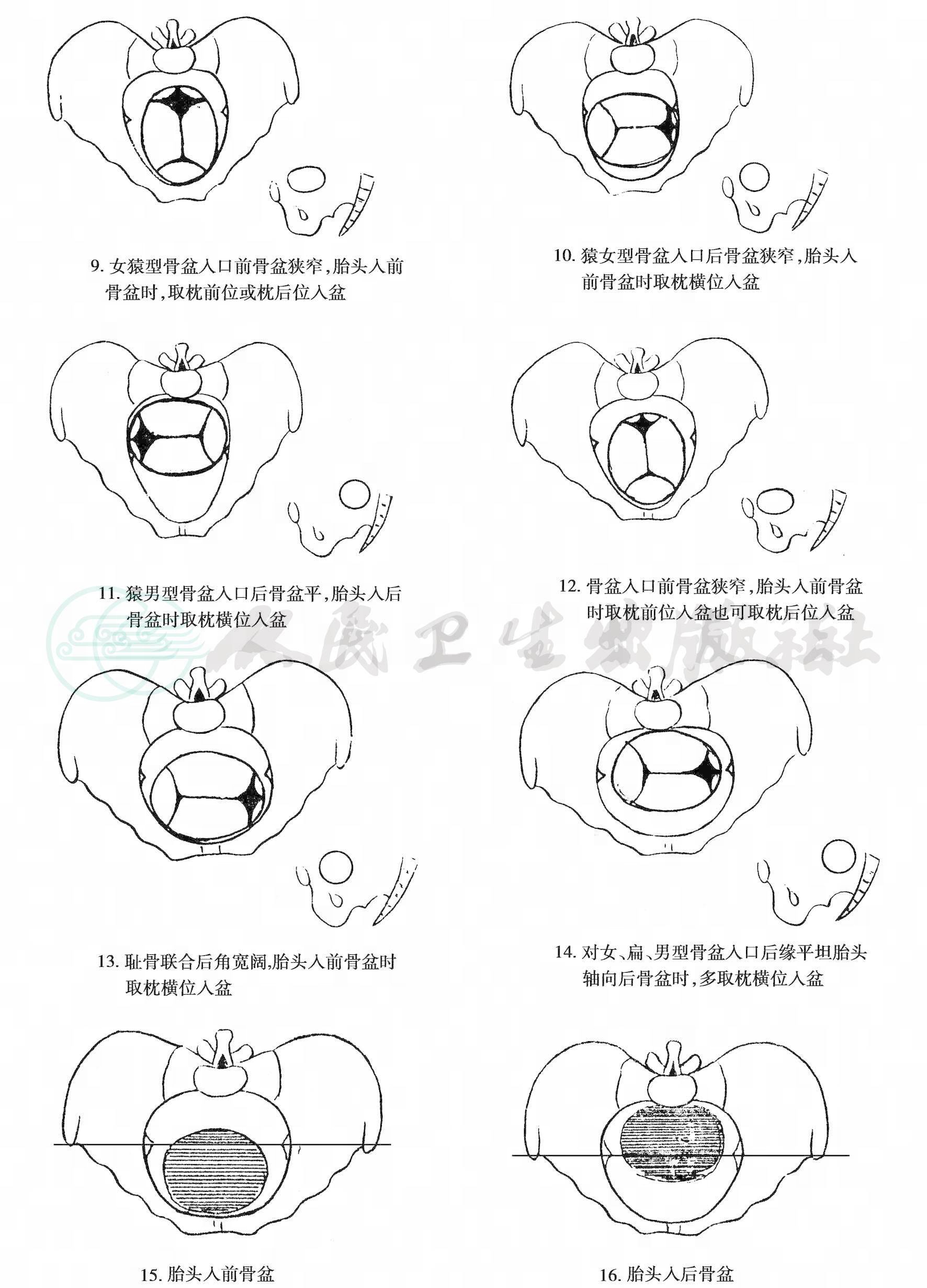 根据Caldwell-Moloy利用X线立体镜方法研究,指明骨盆形态与预产式胎头入盆有关。女型骨盆胎头入盆取枕横位者占69%,枕前位为21%,枕后位为10%。男型骨盆胎头入盆取枕横位为71%,枕前位为8. 5%,枕后位为20. 5%。猿型骨盆胎头入盆取枕横位为37. 5%,枕前位为34%,枕后位为28. 5%。扁型骨盆胎头入盆取枕横位者为80%,枕前位为10%,枕后位为10%。