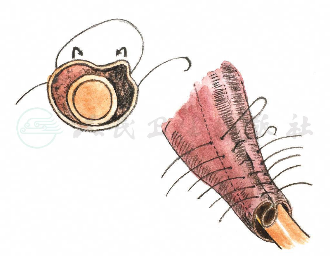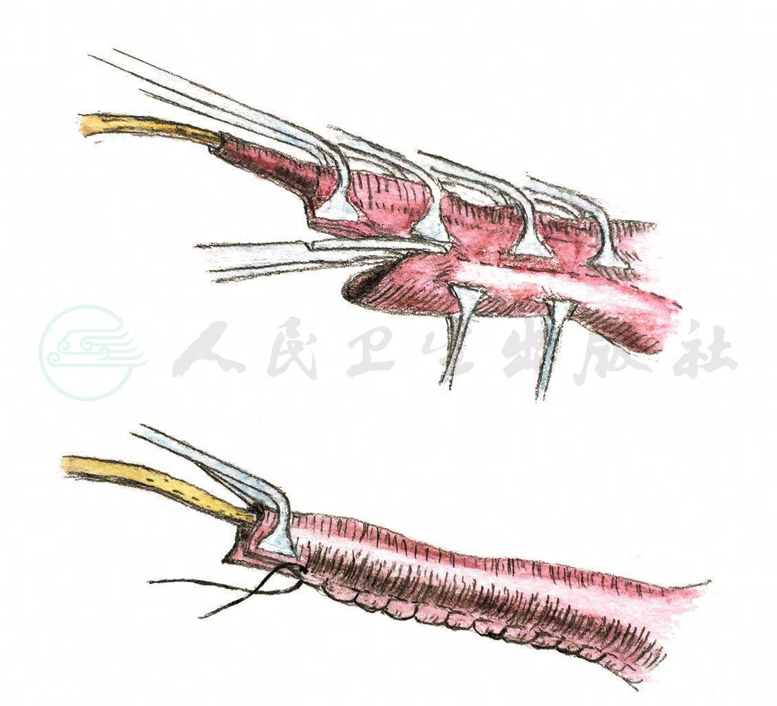图1Starr折叠法5-0单股可吸收缝线间断内翻缝合