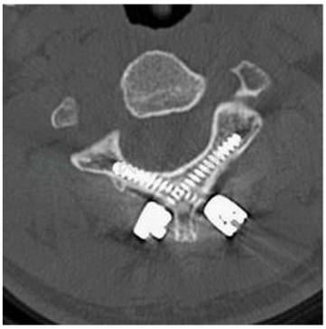 图4枢椎椎板螺钉术后CT片