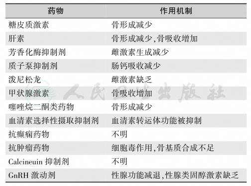 临床上常用的肝素、甲状腺激素和GnRH激动剂也引起或加重骨丢失。