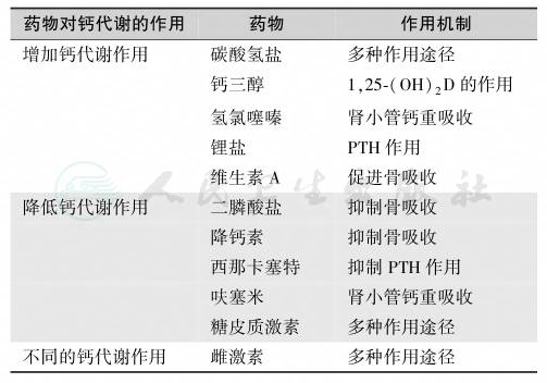 表2影响钙代谢的药物