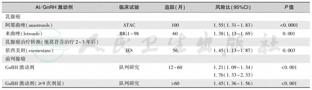 表3芳香化酶抑制剂(AI)治疗乳腺癌与GnRH激动剂治疗前列腺癌的骨折率