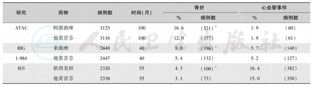 表5芳香化酶抑制剂和他莫昔芬治疗的骨折与心血管事件