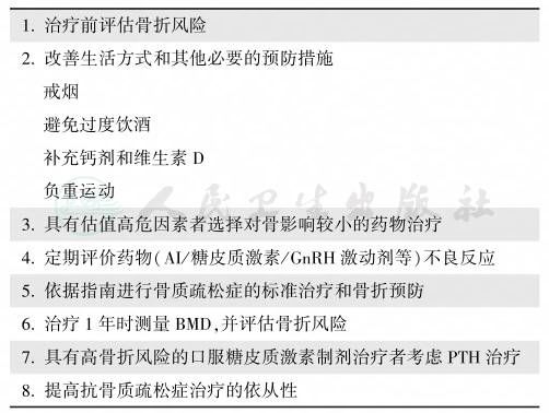 表9接受引起骨质疏松药物治疗者的处理要点