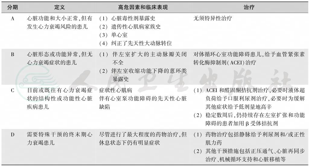 表3婴儿和儿童心力衰竭分期及治疗推荐