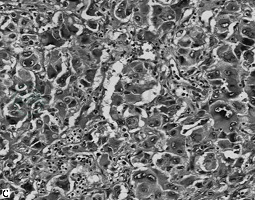 图12嗜铬细胞瘤边缘裂隙状坏死