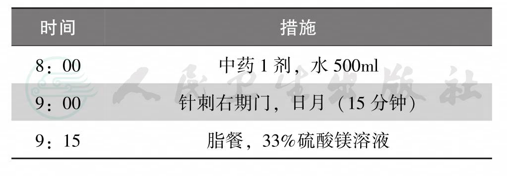 在20世纪80年代,有人将具有疏肝利胆、通里攻下作用的中药与具有解痉止疼效果的针刺疗法和能促进排便作用的硫酸镁按时间顺序联合给予,称之为排石的 “总攻疗法”,以增加疗效,见表34-5-1、表34-5-2。
