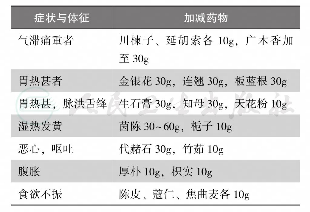 组成:金钱草、茵陈各30g,郁金、木香、枳壳各10g,生大黄10g(后下)。