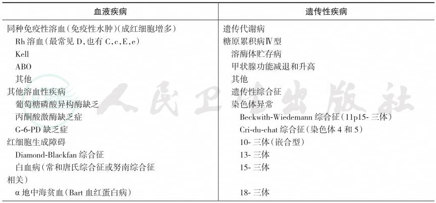 • 胎儿水肿的主要病因是血液疾病,心血管疾病和感染性疾病,遗传异常,肿瘤和特发性疾病