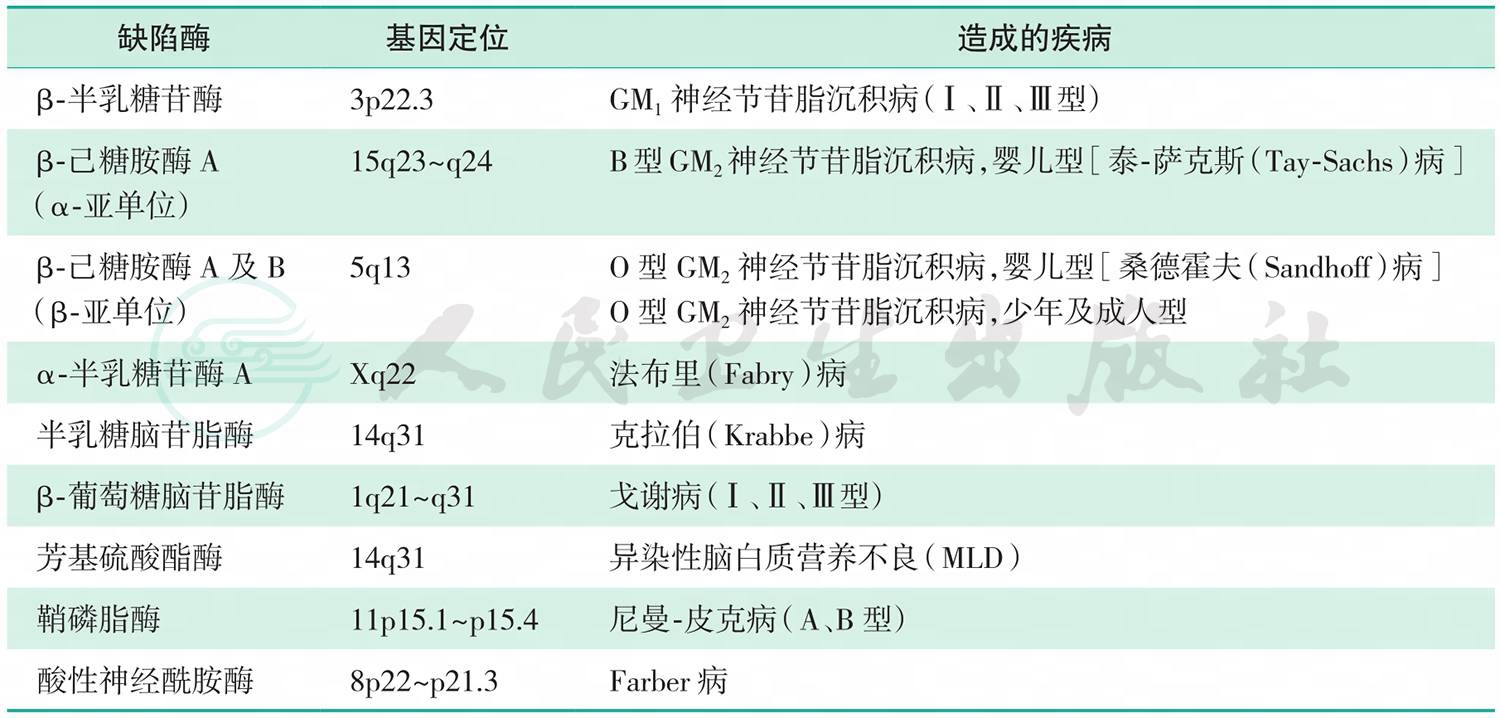 表1溶酶体酶缺陷导致的各种脂质沉积症