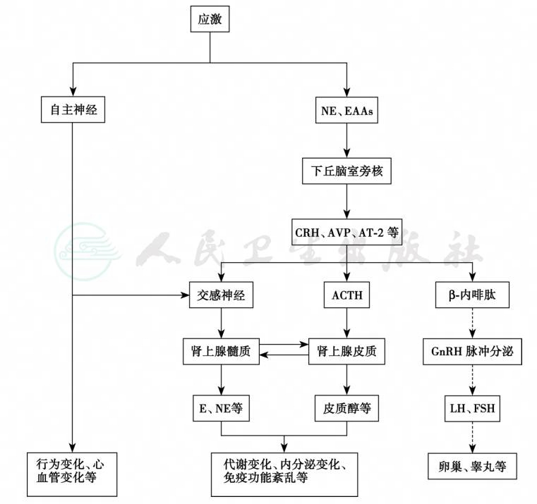 下丘脑-垂体-肾上腺轴和去甲肾上腺素交感系统相互作用组成应激反应系统