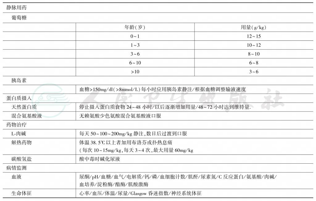 表5Ⅰ型戊二酸血症医院急症处理方案