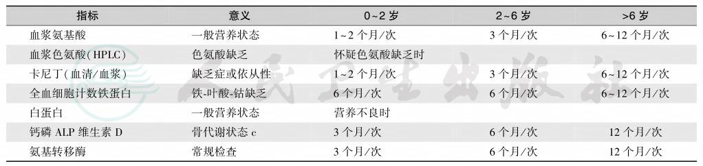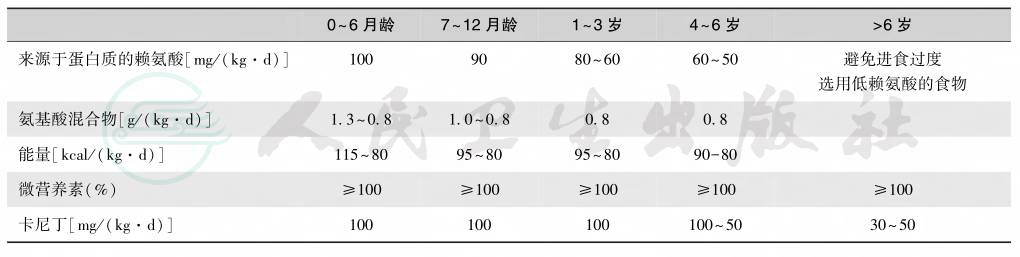 表2Ⅰ型戊二酸血症的低赖氨酸饮食维持治疗