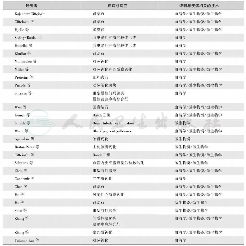 表4钙化性纳米颗粒与疾病