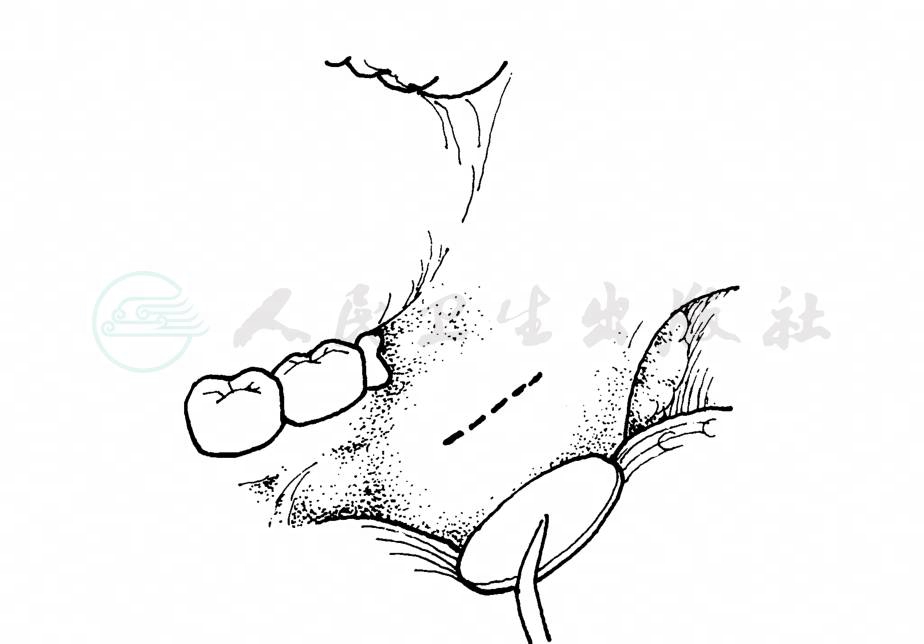 咽峡前是指下颌智牙的舌侧后方这一小区域。其后界为舌腭肌、咽上缩肌,前界为下颌舌骨肌后缘,外侧为磨牙后区及智牙舌侧骨板,内侧是舌体,上界达软腭弓的高度,下界达下颌舌骨肌后缘水平并下通下颌下间隙。舌神经在此间隙通过。Edwards(1942)称此区为“下颌舌骨肌后间隙”(图1)。