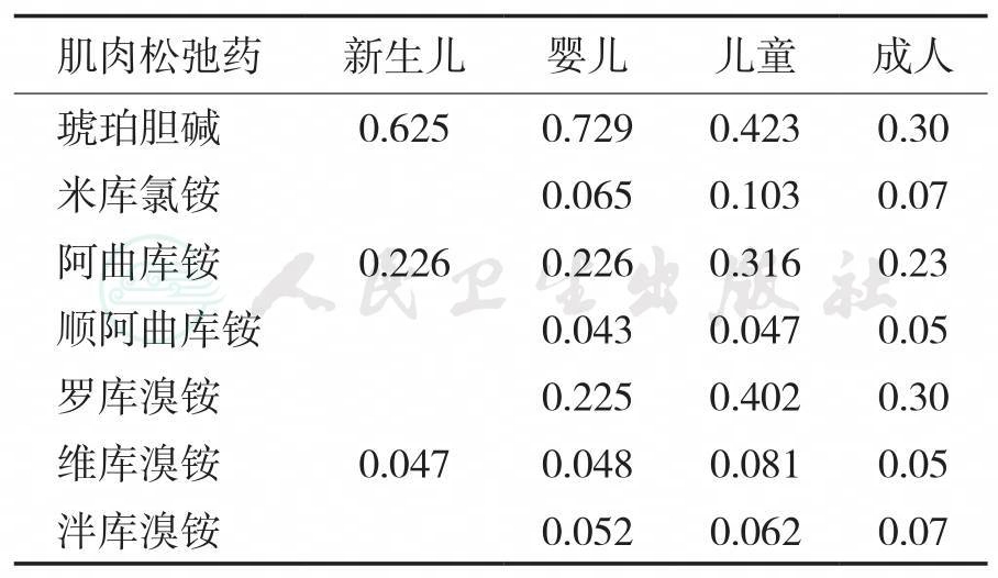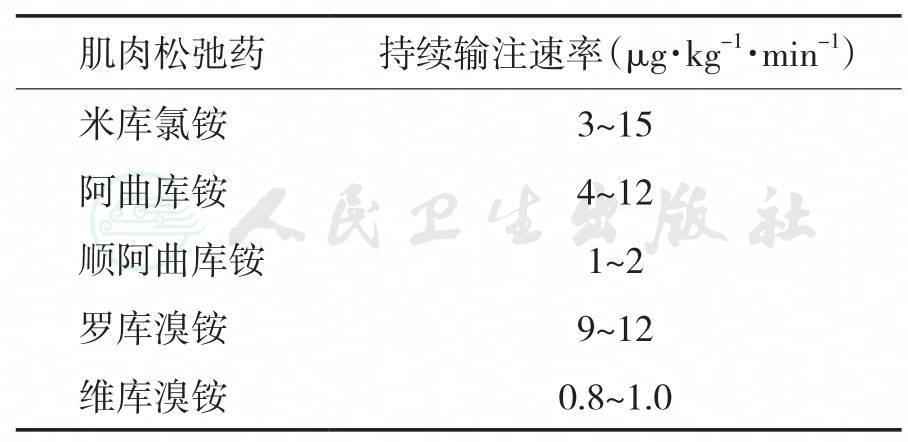 注:表内数据是N2O/O2-静脉麻醉时维持诱发颤搐反应抑制90%-95%的持续静脉注射速率,吸入麻醉时注射速率应适当降低